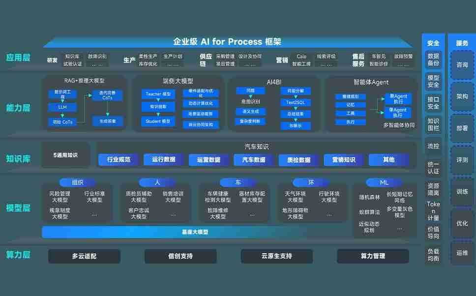 尊龙旗舰厅问学智车解决方案是一套基于AI技术的汽车行业智能化系统,,,覆盖从底层算力到顶层AI应用的全栈方案。。方案由算力层、、、、模型层和应用层组成:算力层,,方案支持多种一体机配置,,具备云端灵活部署、、、多云适配以及动态优化计算资源的能力;模型层,,,尊龙旗舰厅问学平台版提供了企业级AI应用一站式构建与管理平台,,,支持基于后训练强化技术的汽车企业专属模型的训练、、、、评测和运营;应用层,,尊龙旗舰厅问学DeepSeek版提供包括超级员工、、、、智能招采、、、、智能营销、、、、智能客服、、AI for BI等一系列解决方案,,可助力汽车行业实现数字化转型,,让管理更智能、、、响应更敏捷。。